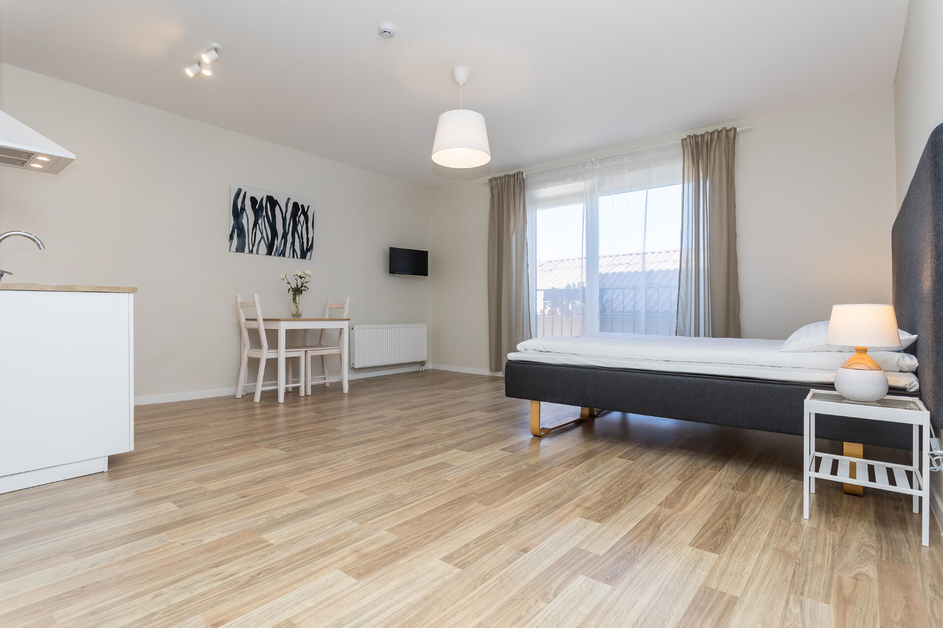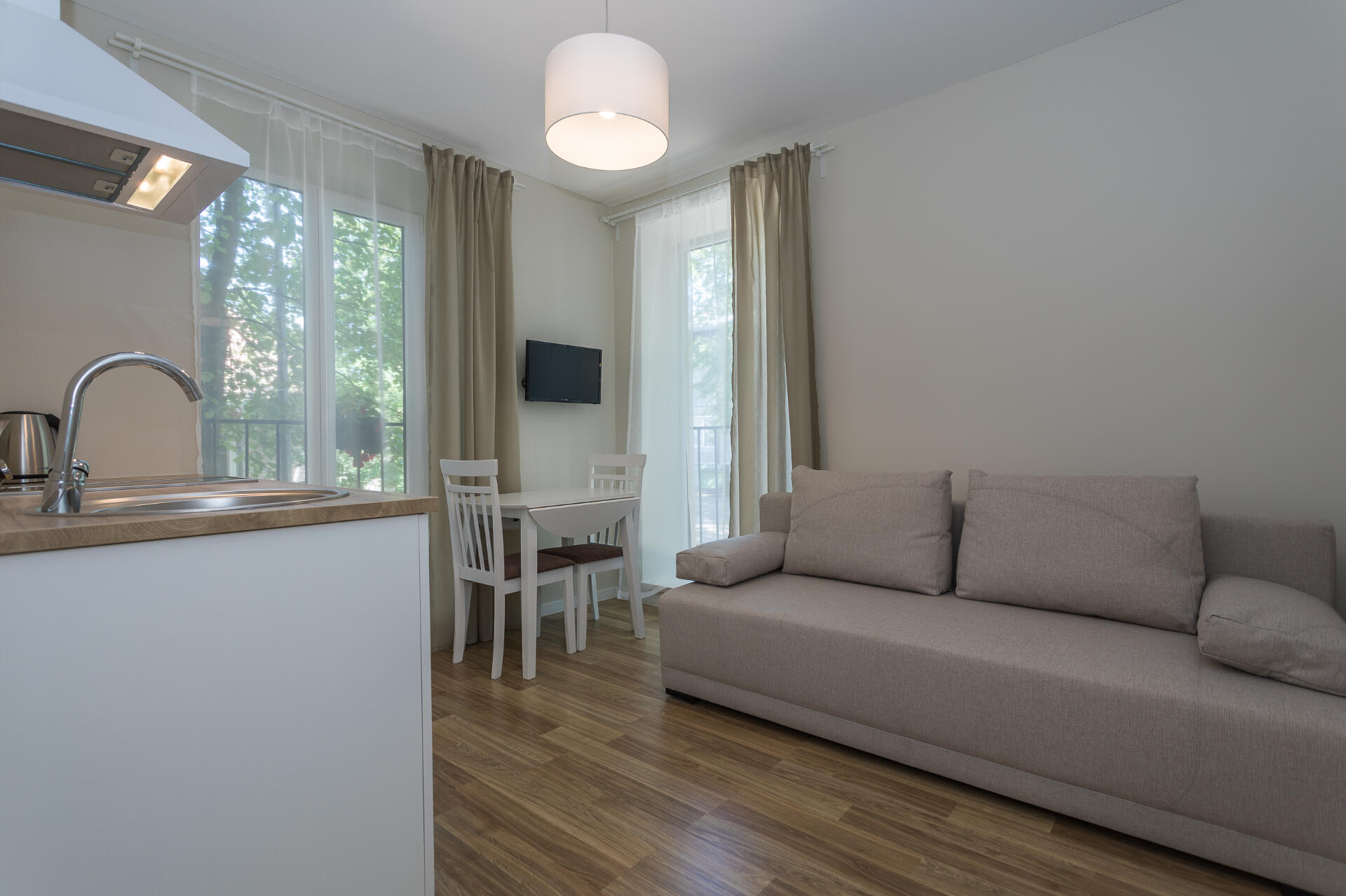 Liepu 16 Apartments is a brand new apartment complex in Palanga offering cozy accommodation throughout the year. It is located a few minutes away from the bus station and a supermarket is right around the corner.A 15 minute walk from the beach and 7 minute walk to the main ‘Basanavicius’ street lets you enjoy the calm at night and be right there in the action of by the sea when you want it.All apartments have a modern bathroom, hairdryer, fully equipped kitchenette (stove, fridge, kettle, kitchenware), a flatscreen TV, ironing equipment, and complementary Wi-Fi.